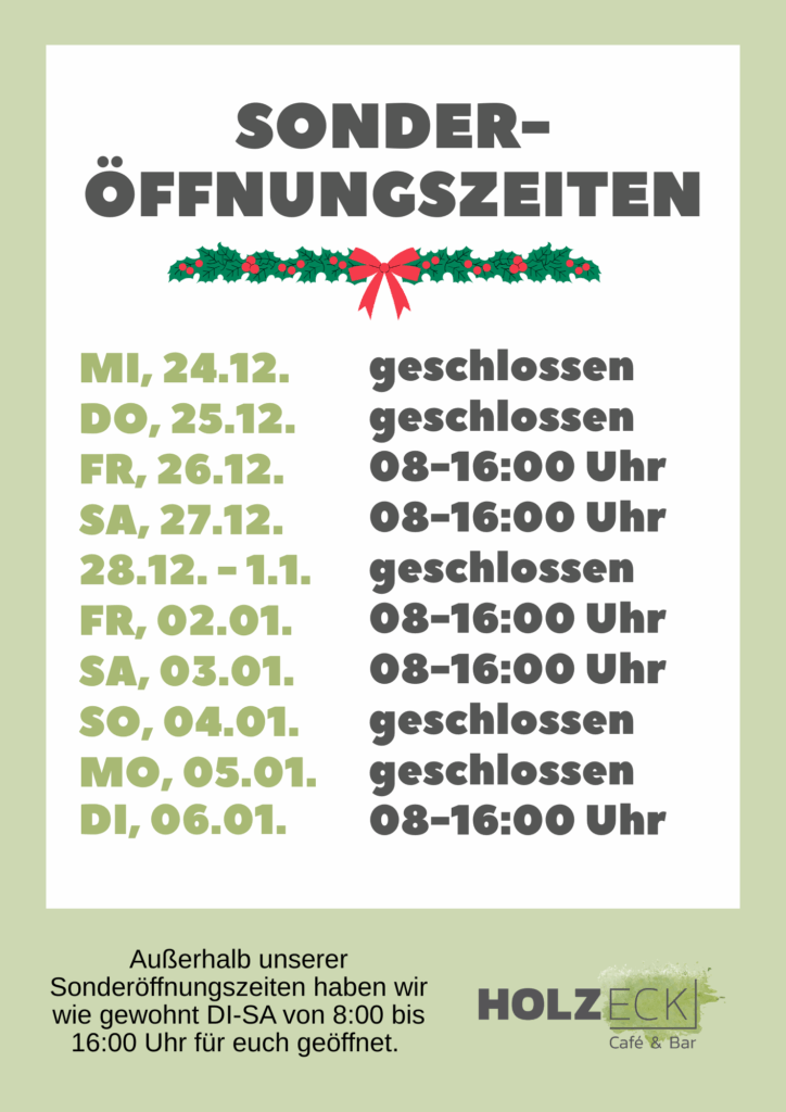 Daher passen wir auch die Öffnungszeiten an, um sie auch langfristig halten zu können. Ab 4.11. sind wir dann immer Dienstag bis Samstag von 8:00 bis 16:00 Uhr für euch da. Außerdem gibt‘s unser beliebtes Frühstücksbuffet dann immer am Samstag.